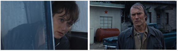 - Y lo más sutil: sin montaje, un movimiento dura lo que dura. Con montaje, un movimiento puede estirarse como un chicle, para reforzarlo y aumentar el dramatismo. A esto lo llamamos “dilatar el tiempo cinematográfico”. Eastwood lo utiliza cuando su personaje desaparece para siempre. Los dos coches, el de él y el de ella con su marido, están detenidos en un semáforo. Se pone en verde y el primero gira a la izquierda; la pareja sigue recto. Todos entendemos que es la última oportunidad que ella tendrá para verlo. Primero, vemos el movimiento desde el frontal del coche de ella; después, desde dentro; y, finalmente, desde atrás. Con un único plano, habría sido imposible insistir tanto.